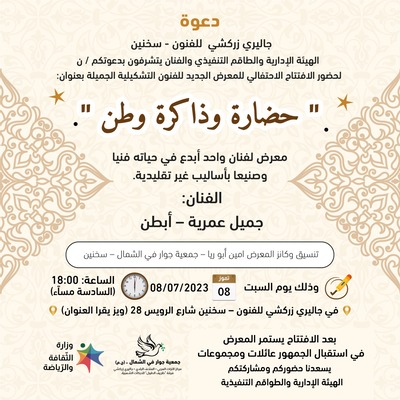 ***مداخلتي في حفل افتتاح معرض "حضارة وذاكرة وطن" يوم السبت 08.07.2023 في جاليري زركشي للفنون/ سخنين