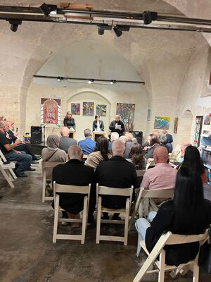 لقد احتشدت قاعة المكتبة بحضور المهتمّين بالمشهد الثقافي من بينهم الكاتبات والكتّاب المبدعين والمحاضرين في الجامعات، مع حفظ الألقاب. وقُدّم الشكر للكاتب مصطفى عبد الفتّاح، أمين عام اتّحاد الكتّاب، وميري أبو جابر مديرة المكتبة، على المبادرة واحتضان الندوة الهامّة.
