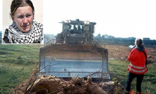 تصرخ راشيل كوري بالمجند السائق بصوت عالٍ: " الآليات جاءت لترسيخ حضارة الإنسان، وليس لتدمير بنيته التحتية، وإرجاعه إلى عصر الإنسان الأول!"... ولكن الرجل الآلي لا يسمع صراخها، بل يتقدم، والفتاة الجميلة تتراجع، وتواجه الجرافة بالعلم الأبيض، ولكنها تنتبه إلى أن ظهرها صار يستند على حائط العمارة التي جاء دورها في الهدم !