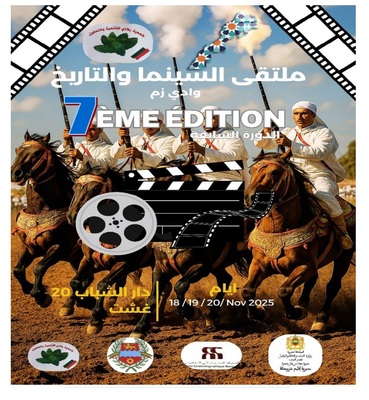 بمناسبة ذكرى المسيرة الخضراء المظفرة وعيد الاستقلال المجيد، تحتضن مدينة وادي زم فعاليات الدورة السابعة لملتقى السينما والتاريخ، التي تنظمها جمعية بلادي للتنمية والتعاون، خلال أيام 18 و19 و20 نونبر2025.