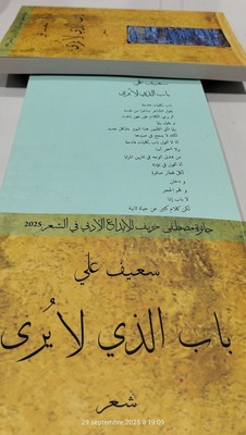 وقد أطل علينا الشاعر سعيف علي بمجموعته الشعرية التي اختار لها من العناوين (باب الذي لا يرى) عن دار "أبجديات للنشر والتوزيع" بتونس، وقد عنون نصوصه بأبواب إستلهمها من لازمة المتصوف العربي "النفري" "أوقفني في باب الـ.... وقال لي" وقد جاءت في صيغة عتبات نصية (باب على سيرة الذئب/ باب النِّفري/ باب الذي لا يُرى/ باب الضِّيق والسُّقوط/ باب الموارب) وقد كان يسبقها الراوي بعبارة ( باب ) و يمكن اعتبار هذه العتبات مهمة في مجال تحليل النص الشعري، لأنها تسعف الباحث، أو الناقد، أو المحلل، في فهم النص وتفسيره وتأويله، أو تفكيكه وتركيبه. والتي في النهاية هي التي تبين وتحدد العلاقة بين ( العنوان ومحتوى النص)، والتي يمكن اعتبارها علاقة جدلية قائمة على المساعدة في إنارة خبايا النص الداخلي لاستيعابه وتأويله، والإحاطة به من جميع الجوانب. ليقف الشاعر من خلال هذه المجموعة أمام أبواب رمزية تؤدي إلى عوالم شعرية مختلفة، والتي ضمّت بين طياتها 14 قصيدة، وقد جاءت في 180صفحة.