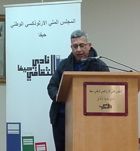 باسم المجلس المليّ الأرثوذكسيّ الوطنيّ في حيفا، وباسم نادي حيفا الثقافيّ وباسمي، نرحّبُ بكم في بيتكم نادي حيفا الثقافيّ الذي تُقام أمسياتُه في هذه القاعة المباركة بحضوركم، قاعة كنيسة مار يوحنا المعمدان الأرثوذكسيّة في حيفا، يشرّفنا أن نستضيف هذه الأمسية "زيتونة فلسطين" أديبنا وشاعرنا الباحث الأستاذ "حنّا أبو حنّا"، تقديرًا ووفاءً لمسيرته الأدبيّة والنضاليّة على مدى أكثر من 60 عامًا، في خدمة الثقافة والأدب والشعر وقضيّة شعبنا، ويَسرّنا أن يشاركنا هذه الأمسية كوكبة من مُفكّرين وأدباء ومُثقفين أصرّوا على مشاركة أستاذنا هذا التكريم الخاصّ، الذي انتظرناه طويلًا من أبو الأمين الذي عارض إقامته، لأنّه كُرّم أكثر من 50 مرّة بدروع وجوائز واحتفالات!