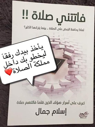 كتاب فاتتنى صلاة للكاتب اسلام جمال الطبعة الرابعة خلال شهرين من اصداره ويتناول الكتاب بأسلوب شيق ومميز مجموعة موضوعات تهم القارئ المسلم وتساعد غير المصلين على الصلاة وفضل الصلاة على الكثيرين