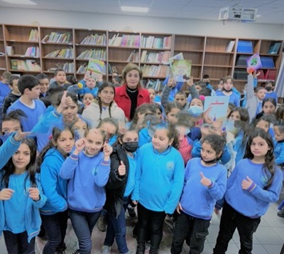 بعد ذلك قرأت الكاتبة بعضًا من نصوصها الأدبية ودار حوار ونقاش حول هذه النصوص كما وتفاعل الطلاب مع ما قرأته من قصص لها منها قصة: الكوكب الأزرق، قصة سكر، قصة ضوء ملون... اذ طرحت الأسئلة ونوقشت المضامين بأجواء ثقافية واعتزاز باللغة العربية.