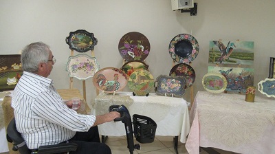 كما رحب بالفنانة التي زينت أعمالها الفنية القاعة، وديعة توتري -حماته- هي من مواليد قرية البصة المهجرة وقد وصفها أنها فنانة بالفطرة، التطريز والرسم بالنسبة لها نهج حياة.