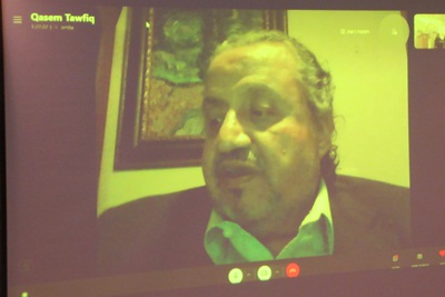 هذا وقد اختُتمت الأمسية بالاستماع الى مداخلة الروائي قاسم توفيق عبر تقنية السكايب، والذي تطرق بمداخلته الى فِعل الكتابة، ورسالتها، دون أن يتوسع بالحديث عن روايتيْه: "جسر عبدون"، ونشيد الرجل. ثم أنهى مداخلته بتقديم الشكر لكل من الكاتبة جميلة شحادة، والناقدة لينا الشيخ حشمة والناقد الدكتور رياض كامل، وخصّ بالشكر مدير نادي حيفا الثقافي، المحامي فؤاد نقارة، وشكر الحضور وكل الذين شاركوا بالأمسية.