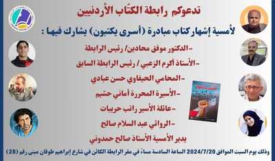 عقدت رابطة الكتاب الأردنيين يوم السبت 20.07.2024 حفل إشهار وتوقيع كتاب "ندوات أسرى يكتبون".