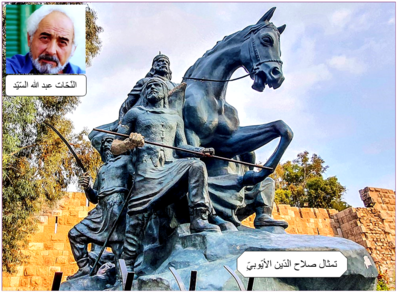 فمرحَى لكَ أيّها القائدُ العظيمُ.. ومرحَى لأناملِ الفنّانِ السّوريّ الرّاحلِ عبدِ الله السّيّد الّذي طالما أوقفَنا أمامَ هذا الصّرحِ الجليلِ صامتينَ وعيونُنا تَدمعُ دموعَ الفخرِ والاعتزازِ ممزوجةً بدموعِ الحزنِ واليأسِ ممّا حلَّ بهذهِ الأمّة، ومرحَى للممثّلِ السّوريّ غسّان مسعود الّذي جسّدَ شخصيّةَ صلاحِ الدّين بكلِّ براعةٍ وأمانةٍ في مسلسلِ البطلِ (صلاح الدّين)، وها أنا أدَعُ الصُّورةَ تنطقُ عن التّاريخِ، وأتركُ فسحةً للتّأمُّلِ في وجهِ النّحّاتِ الّذي أنطقَ التّمثالَ وجعلَه حاضراً يردُّ هجماتِ المعتدينَ، وقسَماتُ البطلِ تنطقُ بالرُّجولةِ وهيبةِ القوّةِ والانتِصار، وحصانُه يُهمهِمُ ساخراً من كلِّ أنواعِ الأسلحةِ الّتي صدِئتْ في مستودعاتِها، ولم تحرّكْ ساكناً أمامَ عدوٍّ ينتهكُ شرفَها صباحَ مساءَ، لكنّها تحوّلَت إلى آلةٍ من الإجرامِ والقتلِ والهدمِ فوق رؤوسِ شعوبِها يومَ نهضَت من سباتِها العميقِ لتستردَّ كرامةَ وجودِها: