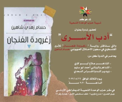 ها هو الأسير حسام زهدي شاهين يحلّق فوق القضبان ليزور عمان كما زار حيفا من قبل وتجوّل في فضاء الوطن السليب عبر كلمته وروايته "زغرودة الفنجان" ليحقّق نبوءة الإعلامي زاهي وهبي في تقديمه للرواية: "يستطيع المحتلّ اعتقال الجسد لكنّه أعجز من أن يعتقل الروح أو الفكرة. من الآن فصاعداً، وسواء كانت حريّة حسام (ورفاقه الأسرى) قريبة كما نحبّ ونشتهي ونتمنّى، أو بعيدة كما يسعى المحتل، فإنّ حسام قد صار كلمة مشعّة بين دفتيّ كتاب، ومَن ذا الذي يستطيع اعتقال كتاب سُطِّر بالحبر المقاوم المُضيء".