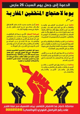 ملاحظة: لإنجاح هذا الاحتجاج الثقافي، يُرجى التنسيق مع لجنة التتبع على رقم التراسل الفوري( الواتساب) 0666895846
